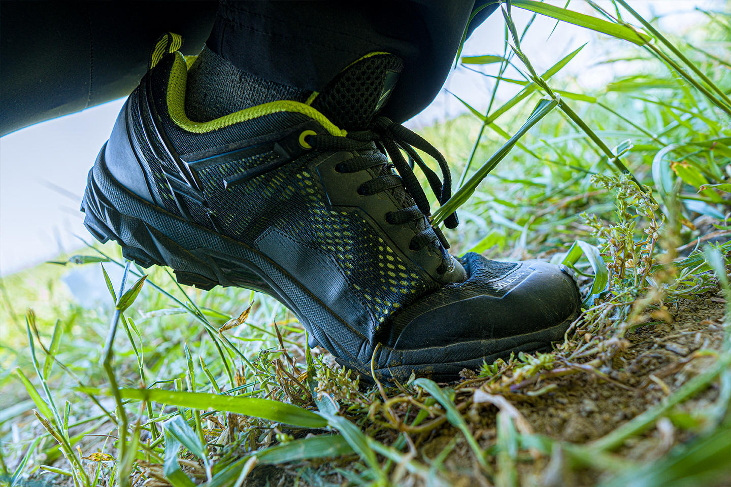 男生穿鞋就会考虑很多了,户外穿的话,经常走动,首先它要非常透气,不能闷热,这款越野跑鞋使用了透气网布的材质,低帮设计,内里鞋垫和海绵都比较吸汗,夏天长时间也能保持干爽。