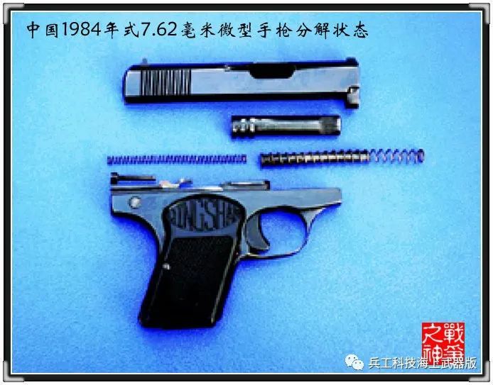 国产84式微型手枪主要由击发机构、发射及保险机构、防偶发保险机构等组成。其中,击发机构可确保在套筒复进时,击针被阻铁挂扣于后方而使击针簧受使击针处于待击状态;发射及保险机构可确保武器在实施单发射击,安全可靠;防偶发保险机构能有效防止武器出现偶然发火现象。多方优化的结构设计,使国产84式微型手枪系统具有长度短、重量轻、体积小、隐蔽性好及携带方便等特点: