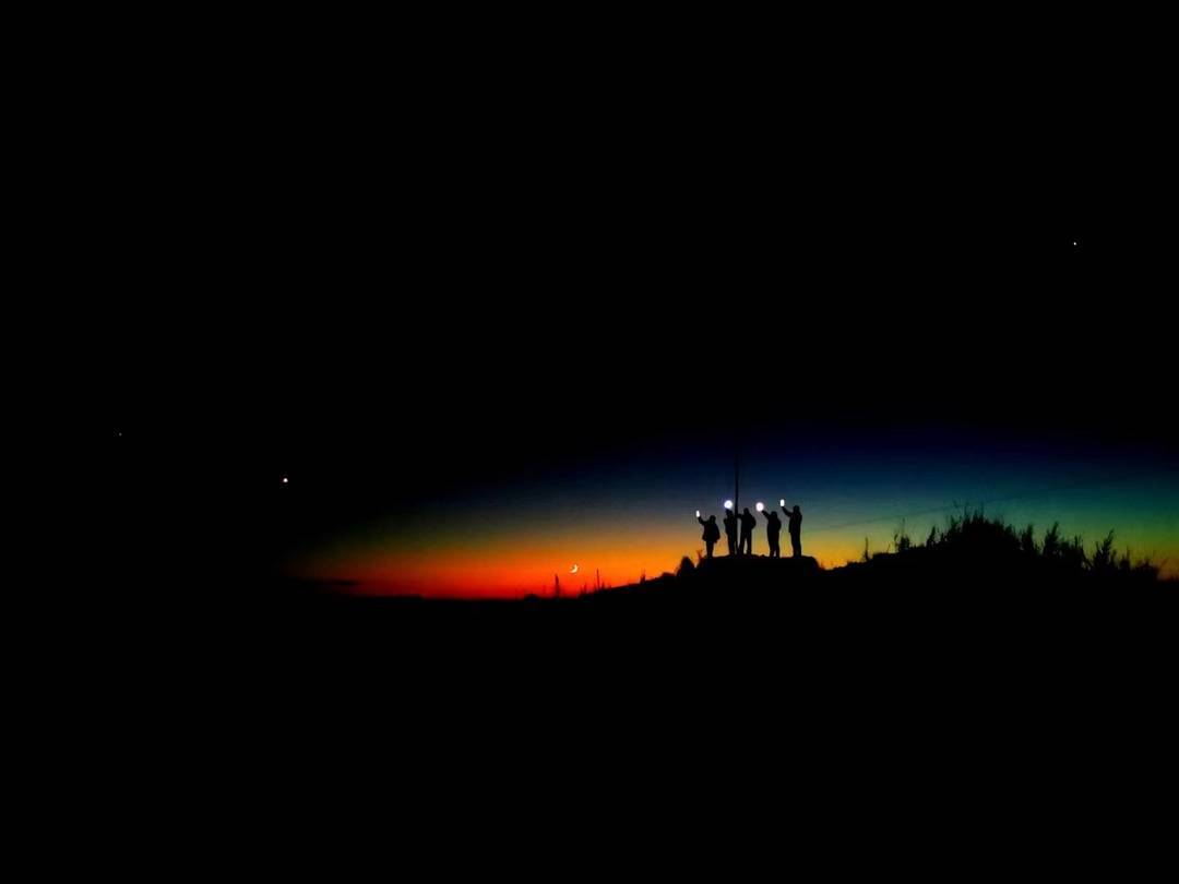 远远望去,在日、月、星的辉映下,手机屏幕发出的微光,在暗夜中越发澄澈,随着心跳一闪一闪的。