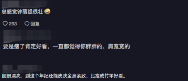 可是评论区却有不少网友觉得钟丽缇的身材不够纤瘦,甚至很显壮。但是也有部分网友表示钟丽缇的身材已经保持得相当不错了,比单纯的纤瘦要更加好看。