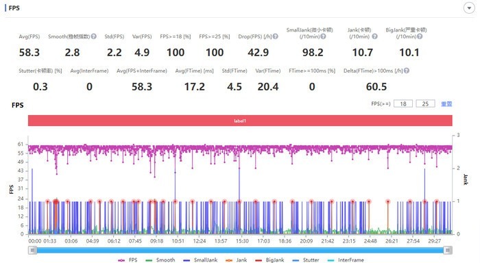 接着我尝试运行更高负载的原神,在中高画质和特效的设置下,将帧率调整至60,除了一些场景切换和加载外,跑图打怪十分流畅,打击感十足。最终测得平均帧率为58.3帧,这样的表现已经媲美大部分的旗舰手机表现。