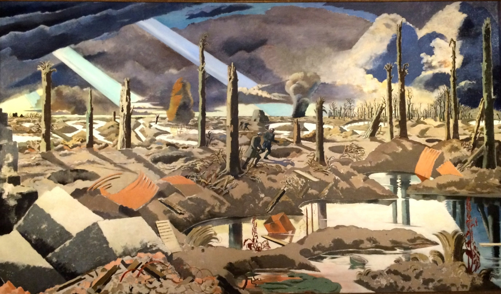 早在现代影像技术尚未萌芽的第一次世界大战期间,大自然已经试图为蒙昧的人类敲响警钟——20世纪上半叶最知名的战争艺术家、曾在一战西线战场服役的保罗·纳什,画下了他亲眼见证的破碎山峦、浓烟滚滚的天空、枯败的森林和被洪水吞没的土地。