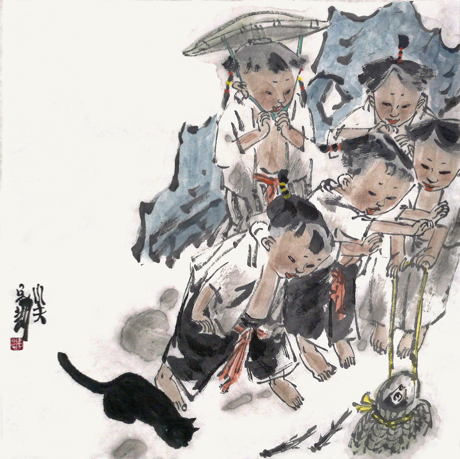 到了当代,一批致力于儿童题材中国画创作的画家们,在多元化的时代背景下,敢于创造又钻研传统,以广阔的视野研究探索新时代儿童题材创作的发展。