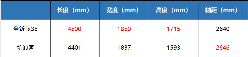 从数据上看的话,全新ix35的长宽高要都比新逍客高,特别是高度,全新ix35足足比新逍客高出104mm,这无疑能够释放出更多的头部空间。
