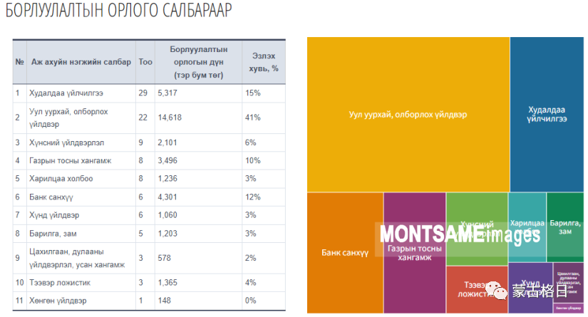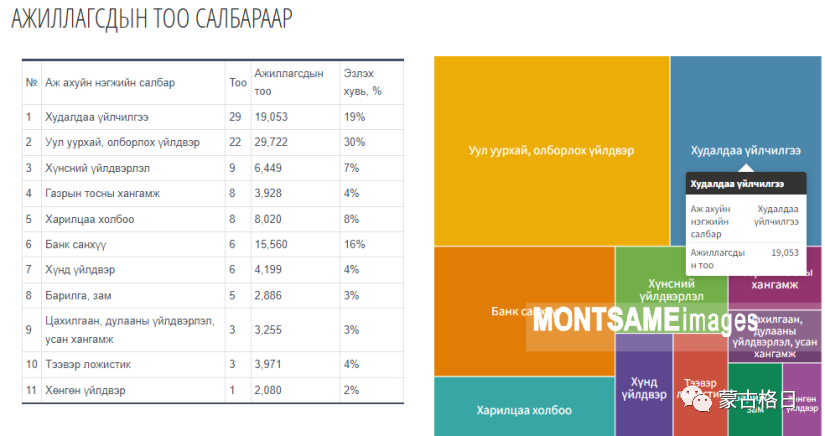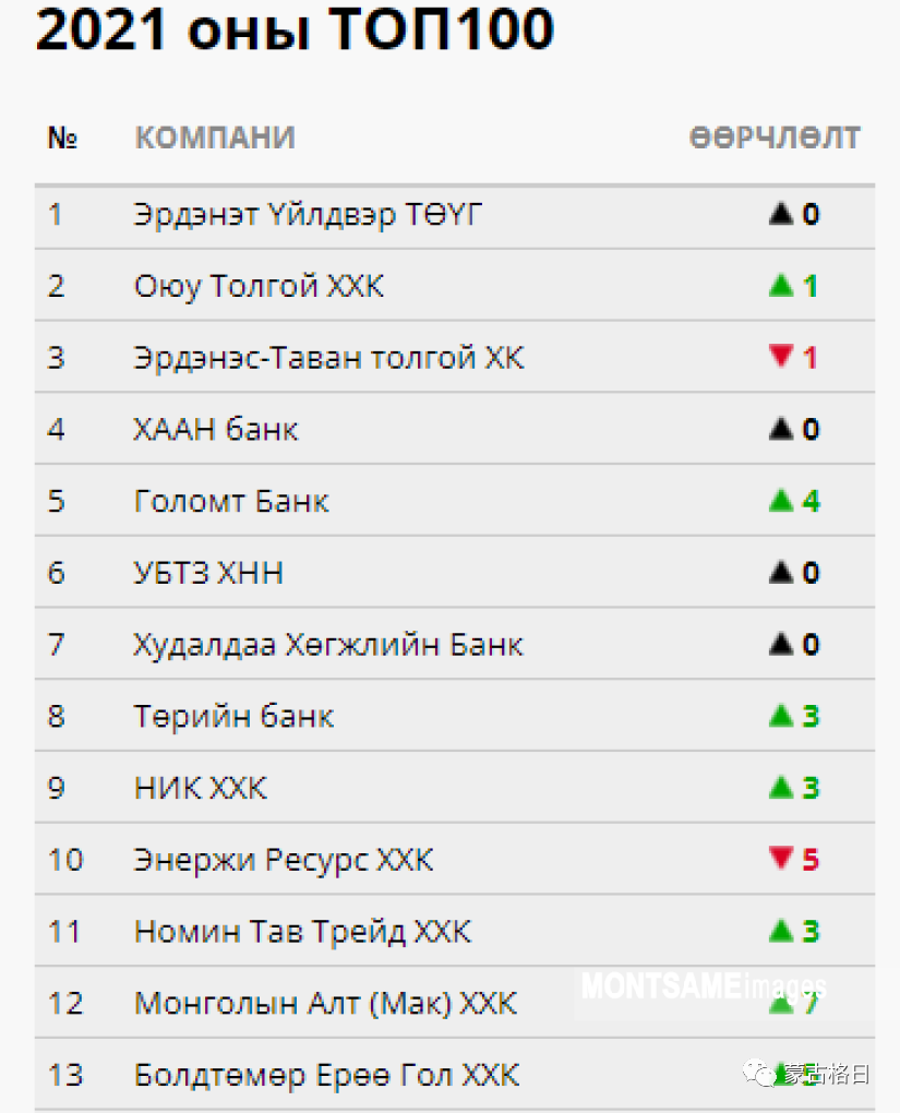 按照员工人数排位,排名顺序分别是:额尔登特集团、额尔登斯塔本陶勒盖公司、奥尤陶勒盖公司、国家银行、“Номинтав трейд”公司。