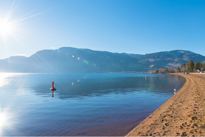 奥肯纳根沙滩在彭蒂克顿的奥肯那根湖南端,一直是这一地区最受欢迎的沙滩,吸引了许多家庭。