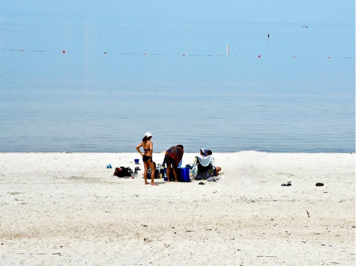 海滩的游泳区有很长的浅水通道,非常适合涉水、水上橄榄球或飞盘。