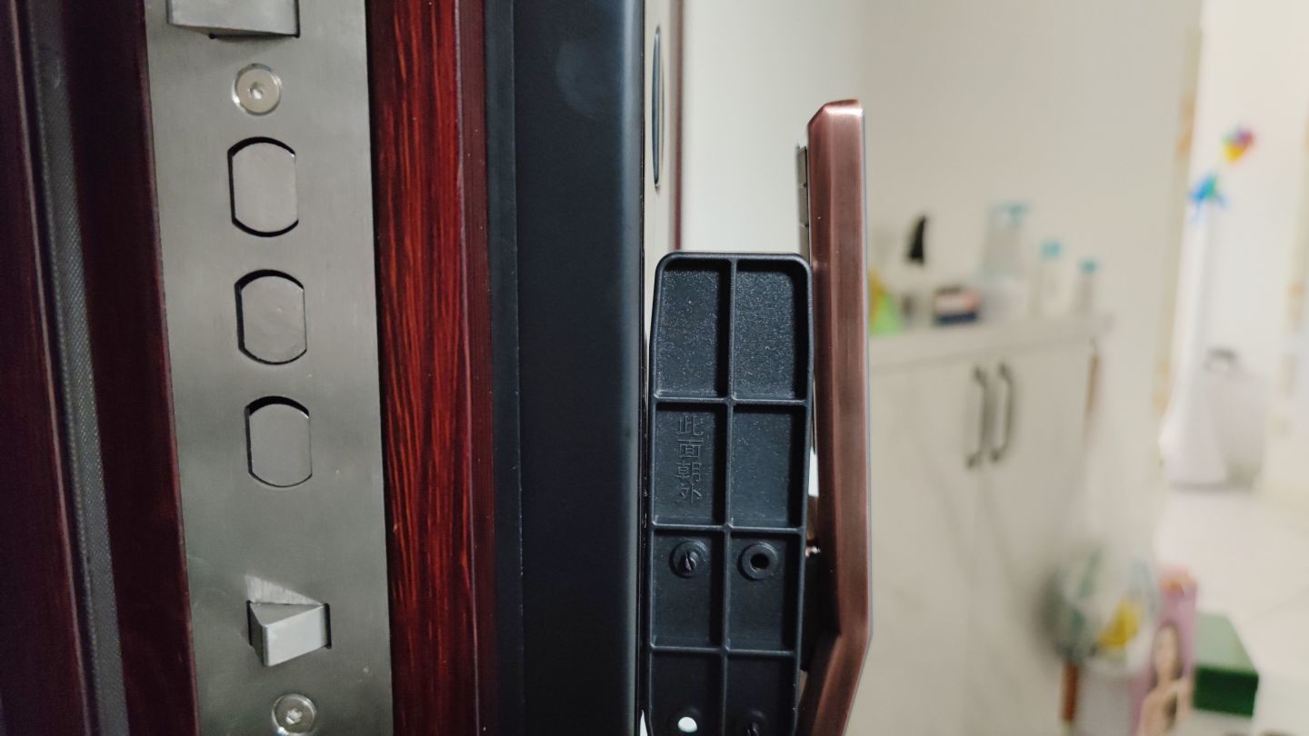 外部区域的把手,上午有设置猫眼区域,提供了1080P的高清画质,满足了猫眼的功能,可以轻松实现智能对话交流。同时大广角的高清摄像头,也夜晚有补光功能,画面也十分清晰。针对门外的人员走动,还提供了人体监测功能,逗留检测,当有人长时间在门口逗留,就会有提醒,可以让你了解门外的人员情况。