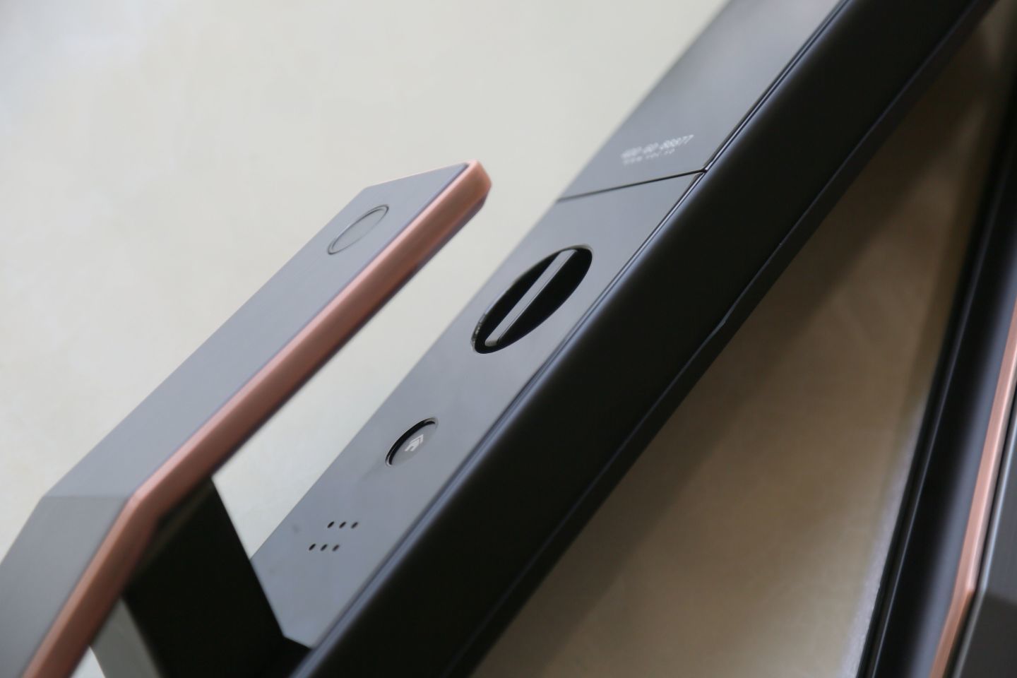 指纹识别区,位于门锁把手的的外侧。使用起来更加符合操作起来,而且也更加安全。指纹开锁,内置自行学习算法,经过长时间的磨合,会让指纹开锁更加懂你。响应时间会更短、更灵敏。