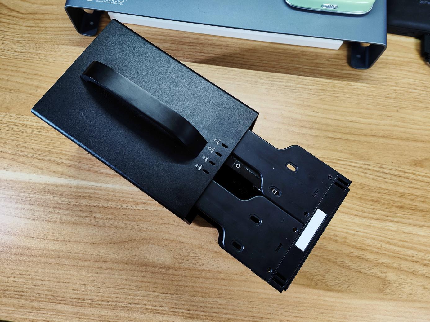 对于阵列盒产品的电源适配器有点像老式笔记本的充电器,因为阵列盒需要长期供电、风扇散热,所以对于用电的功率和稳定性要求都比较高,普通的USB的方式无法满足,当然你可能觉得太大了,但实际使用场景基本都是固定摆放的,所以大小上基本可忽略。
