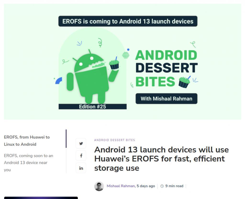 虽然现阶段还与安卓 12 无缘,但 Esper 的知名科技作者、XDA 前主编 Mishaal Rahman 发现,未来搭载新版安卓系统的手机,都将使用一项华为贡献的开源技术。手机速度更快,更省空间