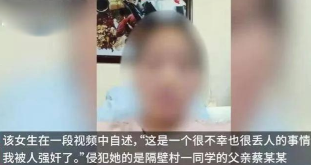 16岁初一女生小梦(化名)于5月4日在校舍诞下男婴。她一段视频中自述,去年7月上学的途中曾遭同学父亲性侵。“这是一个很不幸也很丢人的事情,我被人强奸了。我乘坐他的车去学校读书的途中,他强行和我发生了关系。该男子叫蔡某某,37岁左右,前后共侵犯了我三次,直到在学校生下了孩子”。