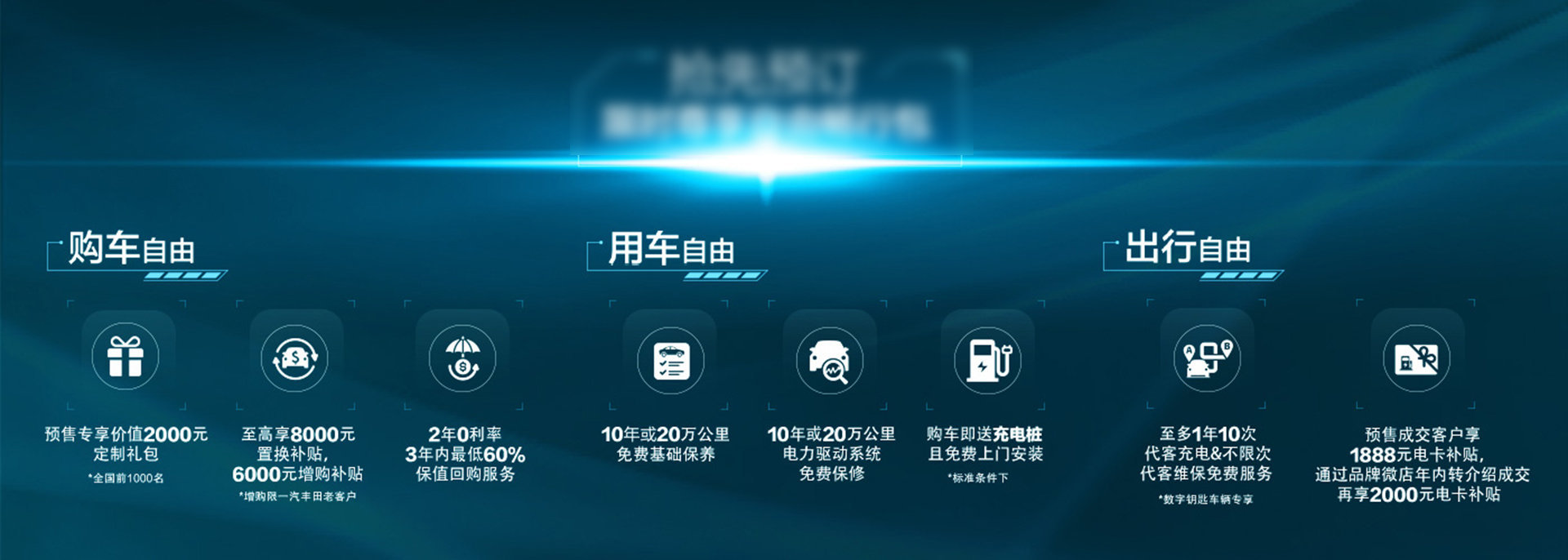 目前bZ4X的预售政策看起来相当丰富,2k定制礼包,8k置换补贴(老客户可享受6k增购补贴),10年或20万公里免费基础保养,10年或20万公里电力驱动系统免费保修,免费安装充电桩,1年10次代客充电&不限次数代客维保免费服务,电卡补贴等。
