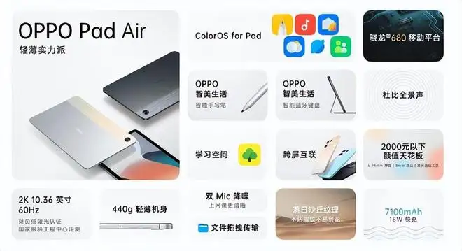 近日,OPPO在新品发布会上正式发布了第二款平板电脑OPPO Pad Air,定位于轻薄入门级别千元平板,1299元起售(首发1099元)的定价大大拓宽了平板电脑的面向人群,受到消费者关注。