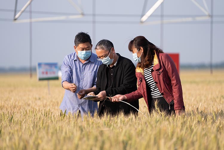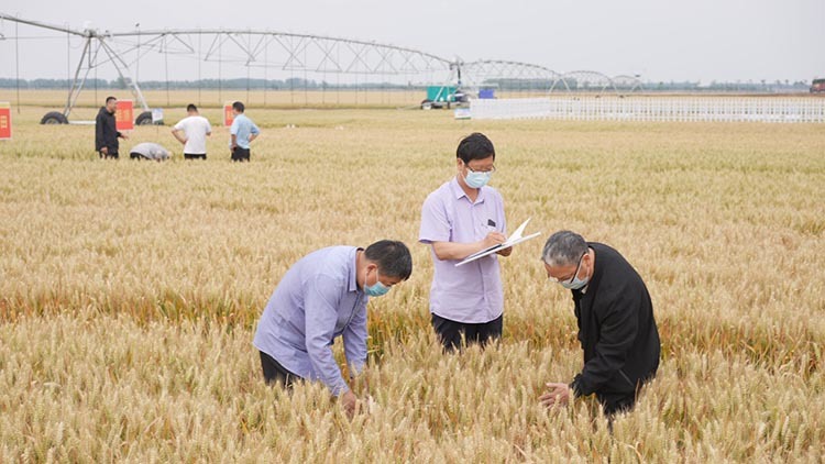 5月19日,麦收前夕,驻马店市西平县农业农村局组织专家测评组对西平县高标准农田土壤改良应用农业农村部健康耕层构建技术示范田的小麦进行现场测产和耕层影响评价。该块示范田共计有4个小麦品种应用健康耕层构建技术,分别是豫农908、中麦587、囤麦237和天宁38,今天专家分别对这4个品种的小麦进行测产。