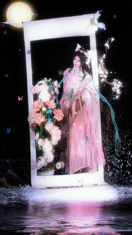 月上柳梢头,繁花似锦,少女不知愁滋味,盛装而来,细雪霏霏,红梅盛开,好一副冬夜美人图!
