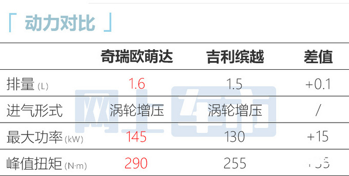 动力部分,奇瑞全新欧萌达搭载鲲鹏动力1.5T、1.6T发动机,其中1.5T车型最大功率为115kW,峰值扭矩为230N·m,传动系统匹配CVT变速箱。1.6T车型最大功率为145kW,峰值扭矩为290N·m,0-100km/h加速时间仅为7秒,传动系统匹配7速双离合变速箱。