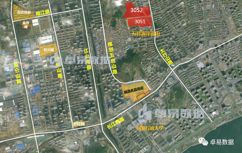 这5块地比较散装,地块面积也不大,占地面积均为10000多㎡。