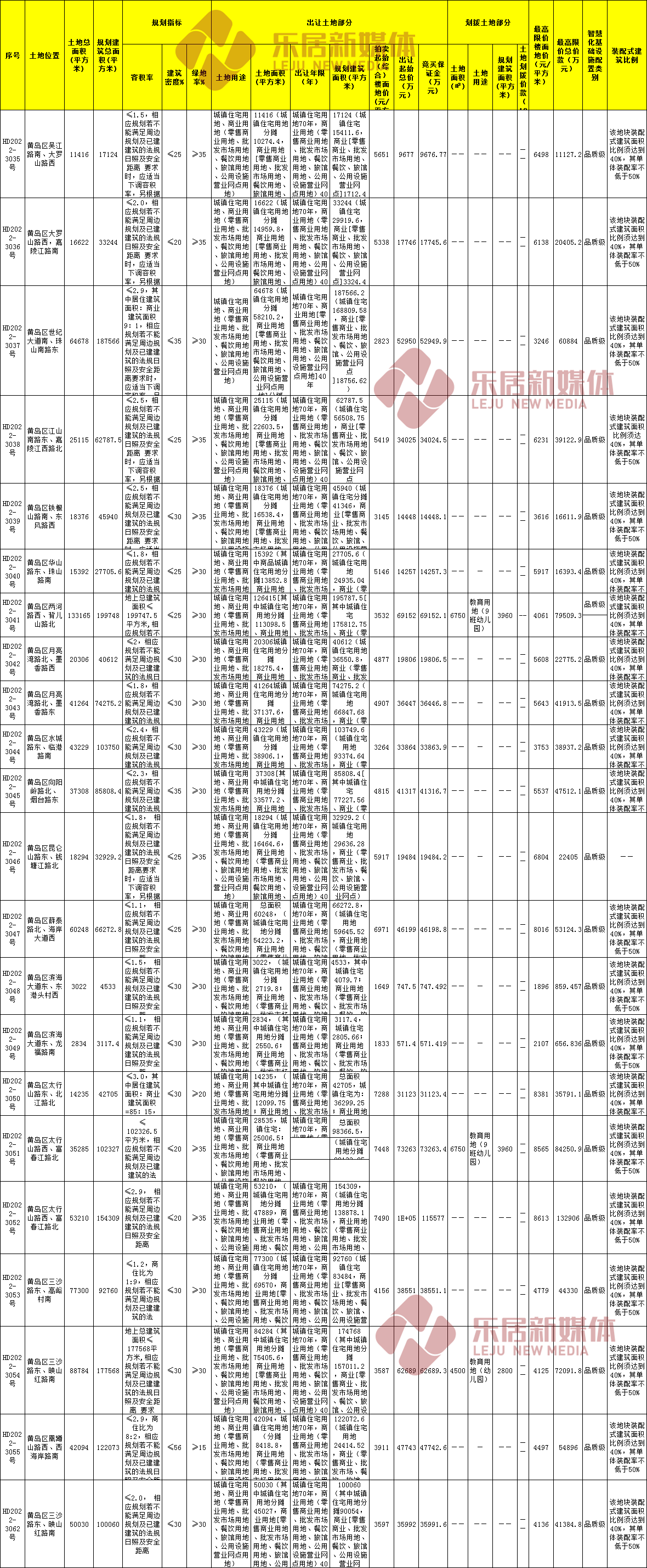 西海岸此次挂牌22宗地,地块全是商住地,总占地面积872207㎡,规划建面177万㎡,起拍总价81.56亿,保证金也为81.56亿。