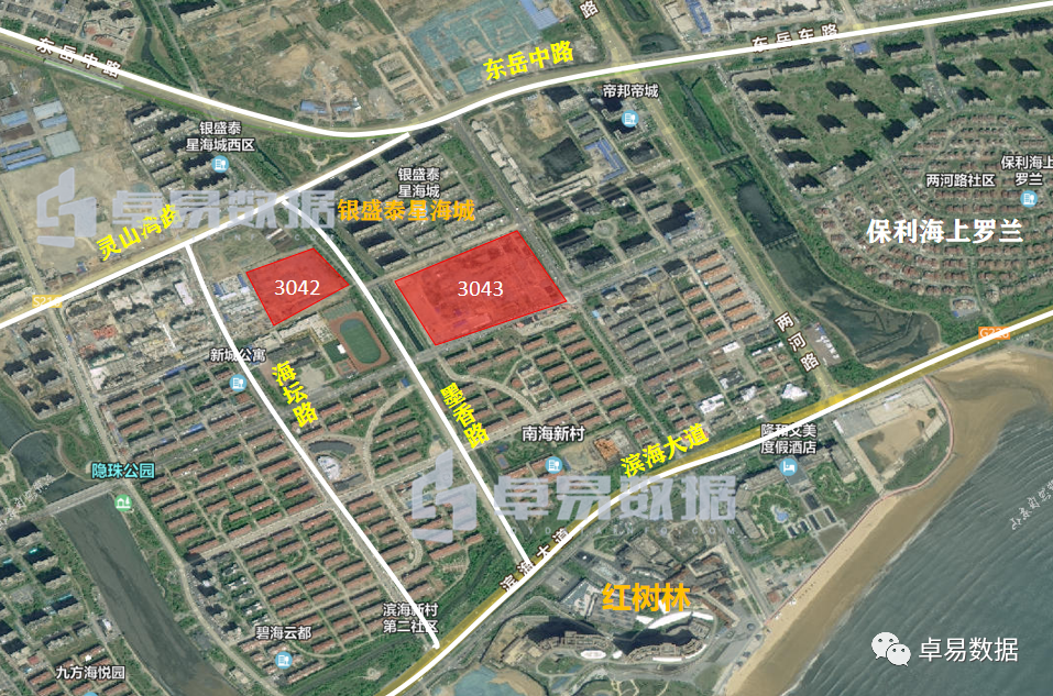 这2宗地是规划中海岸万科城用地,总建面10.37万㎡。