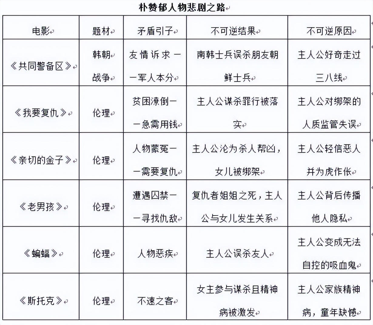 知乎上有网友总结了朴赞郁每部电影的悲剧之路,呃,满屏都是负能量。
