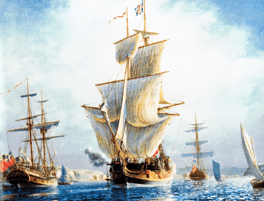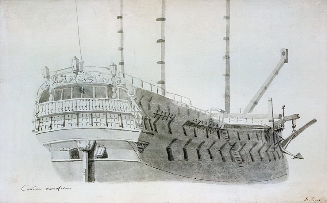 ▲派鲁在担任东印度舰队司令时的旗舰“卡洛登”号