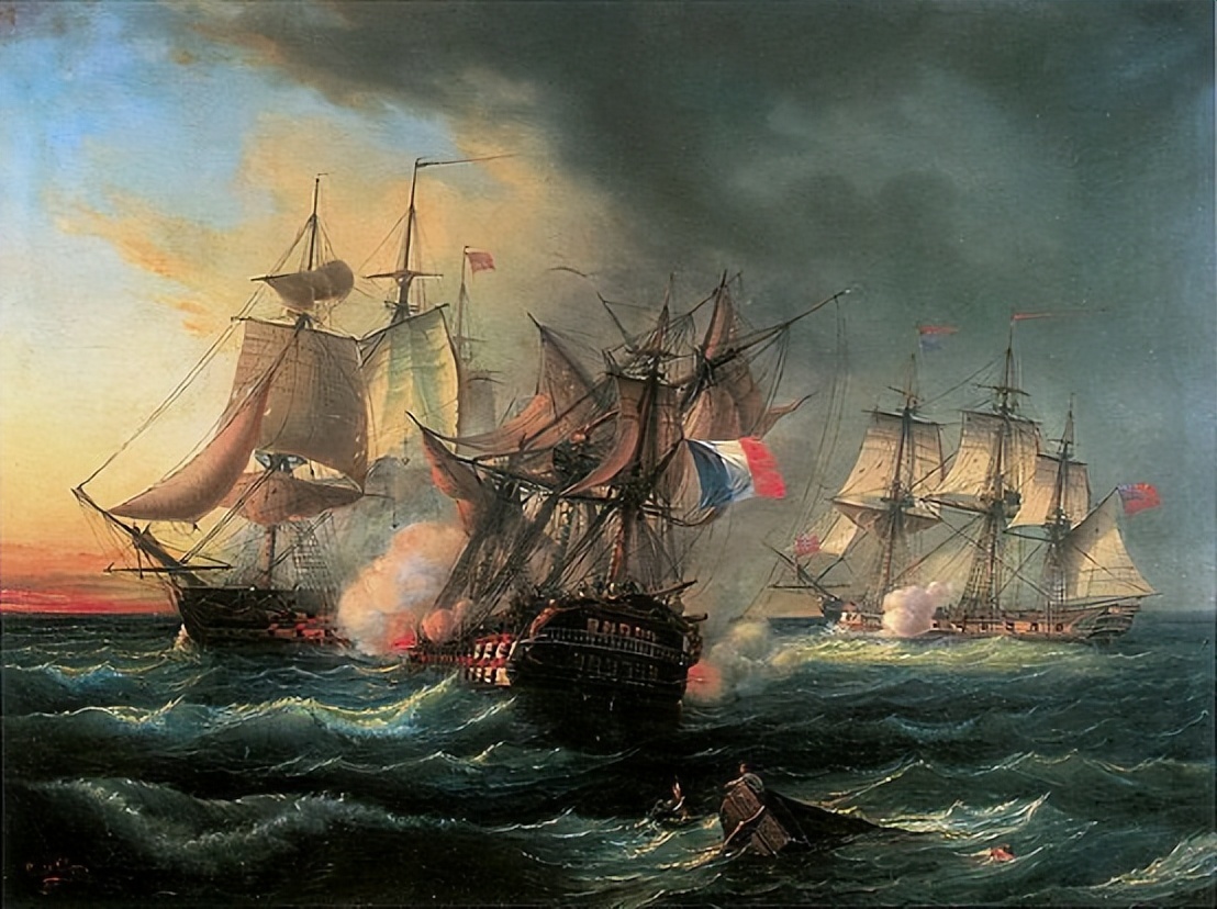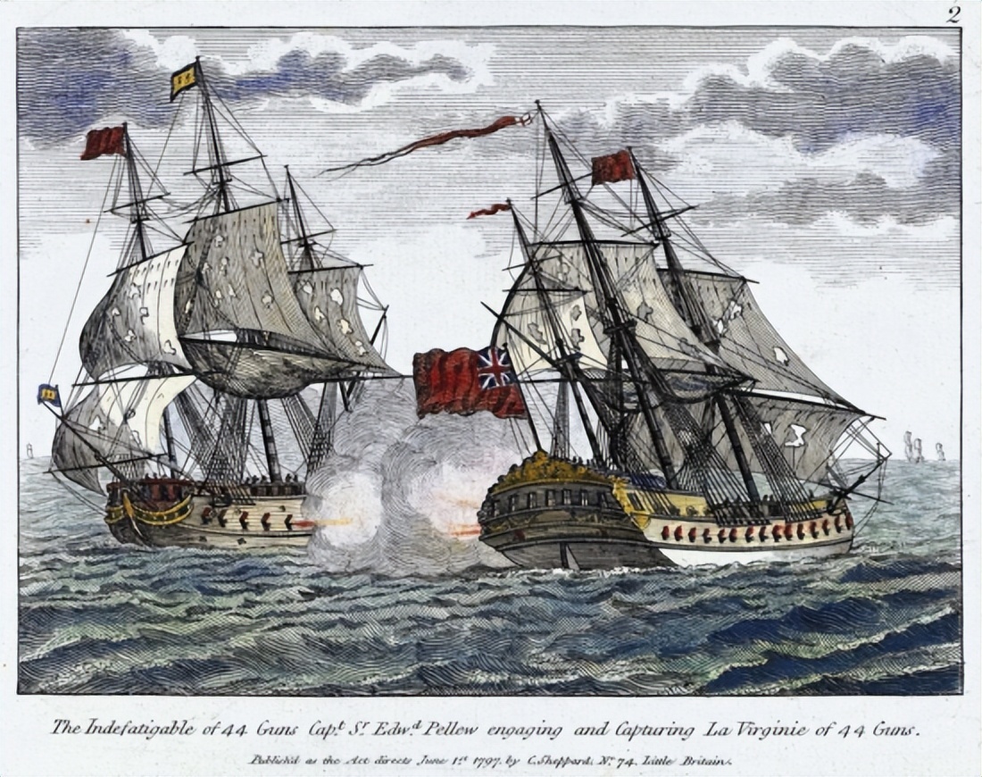 ▲派鲁指挥“不倦”号与法舰“维吉尼”号交战