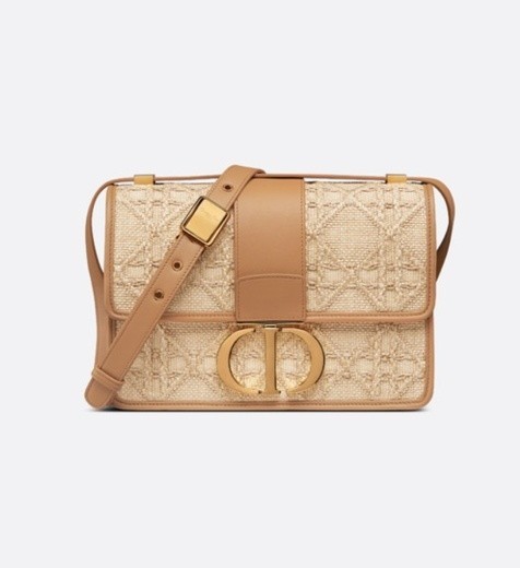 DIOR迪奥30 Montaigne 产品系列灵感源自蒙田大道三十号,款式经典,彰显DIOR迪奥品牌的标志性风格。这款手袋采用酒椰草精心制作,饰以经典的藤格纹图案。翻盖饰以复古金色饰面金属“CD”扣环,灵感源自 Christian Dior 香水瓶的封口。