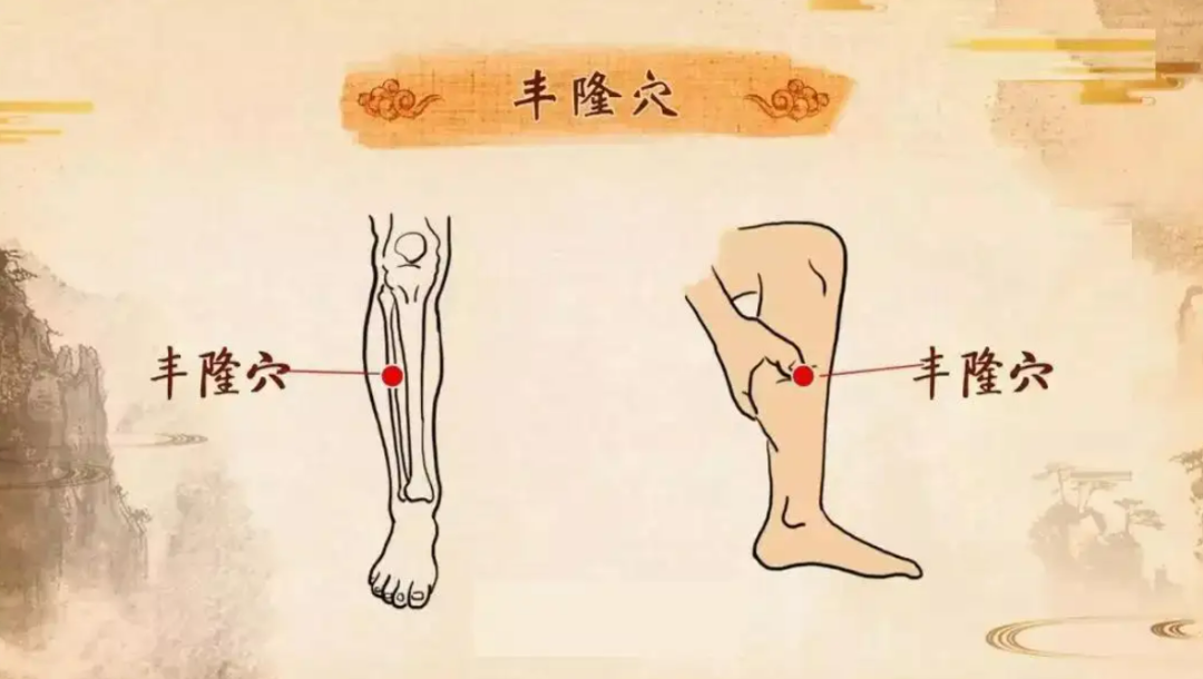 方法:丰隆穴在膝盖外侧与脚踝连线正中间的点上。用指腹以画圈方式按压,以带酸胀感为宜,每次15下,每天按2~3次。