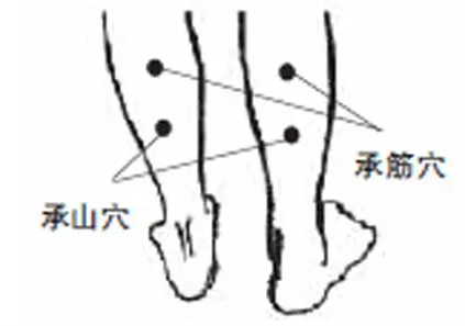 方法:一条腿站立,用另一条腿的脚面依次踢打站立腿的小腿子的承筋穴或承山穴。