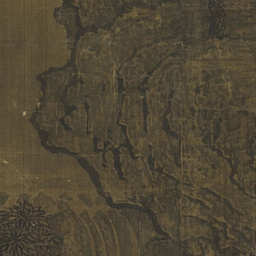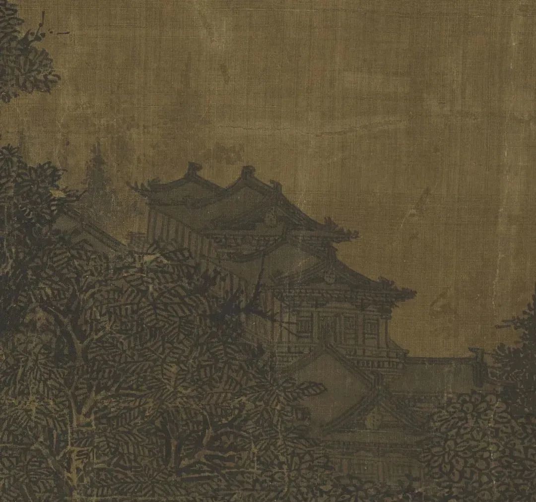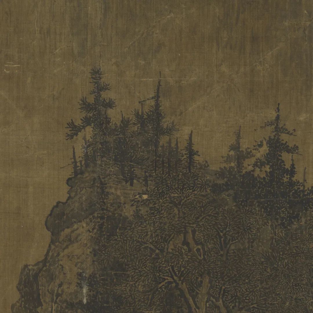 山既为终南太华之山,树亦为河朔平原之树,观其垂直之分布,饶有至理:幅之下端,尽画夹叶,阔叶成林,拓展荫深,柿栗可指。至画中琳宇一带,地势渐高,乃出针叶之树,拥尖垂翼作宝塔形上指晴岚,分明是松杉之属。千尺绝壑之顶,气节高寒,针叶树亦不能生存,故只有灌木林薮随崖趋赴,画出千古人迹不到之洪荒景色。卑处阔叶,高处针叶,绝顶灌木,林木之垂直分布正是如此,故一画作成实感撼人,悬画对览,顿生高山仰止之心!