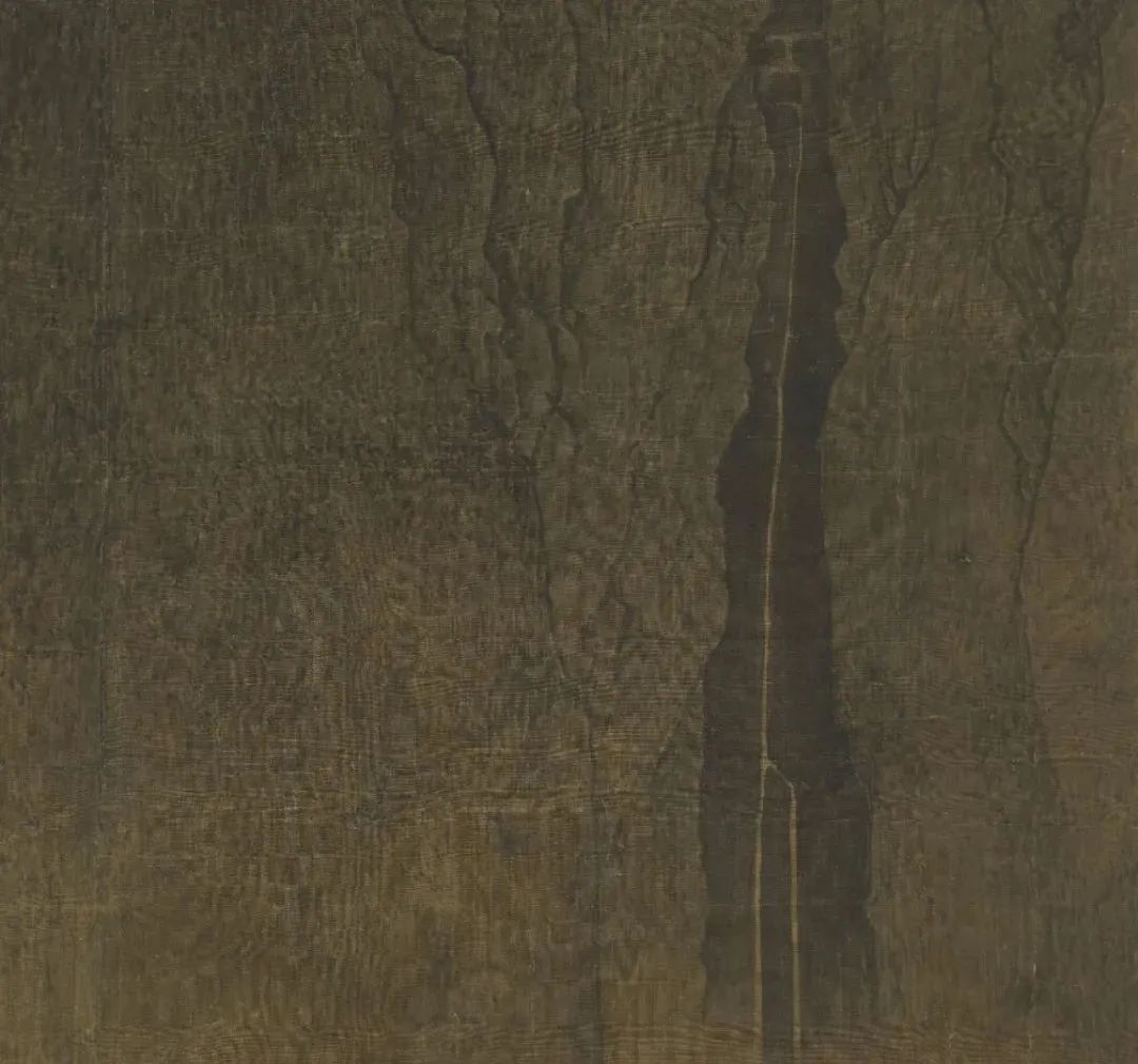 用笔在这里就是说线的造诣,这是东方艺术的重要特征,在范宽的《溪山行旅图》上正可以使我们窥见我国大艺术家在这方面所践履的高标。在这幅画上用笔的主调有了长短两种线条。长线条触目可见,如山石的形廓,树木的枝干。这是画大画最后的一道手续,用浓墨甚至于焦墨在紧要处“提”一下,为的是大画须悬起远观,若不重墨提神,那就站立不起,于这里最要见画家的真实工夫。