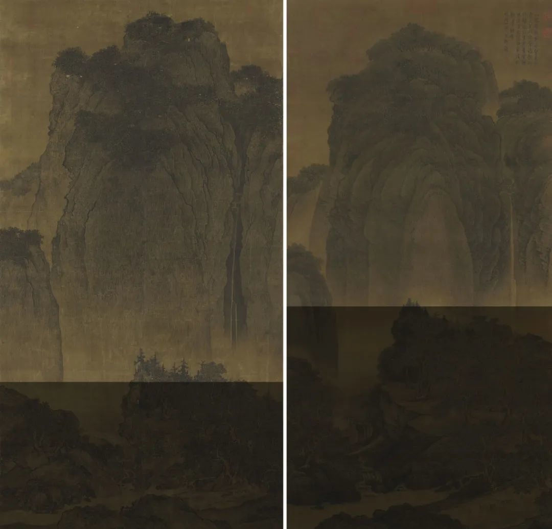 左:范宽《溪山行旅图》;右:王时敏题识《行旅图》