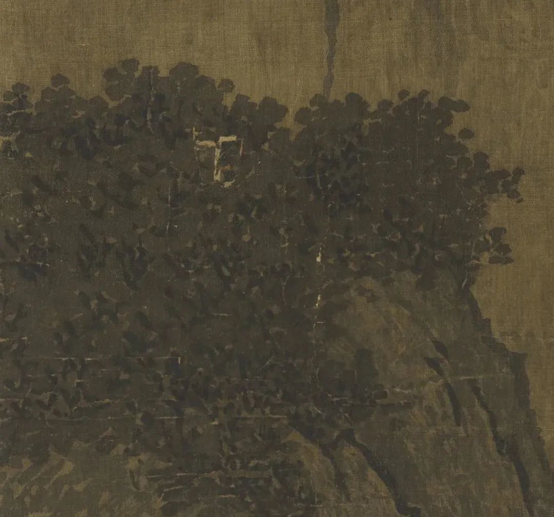 通体的墨色光彩照人,历千年而不颓,这是范中立通体运墨成功之处。另有两处用墨,具见工力,可以揭出,作为部分运墨成功的好例: