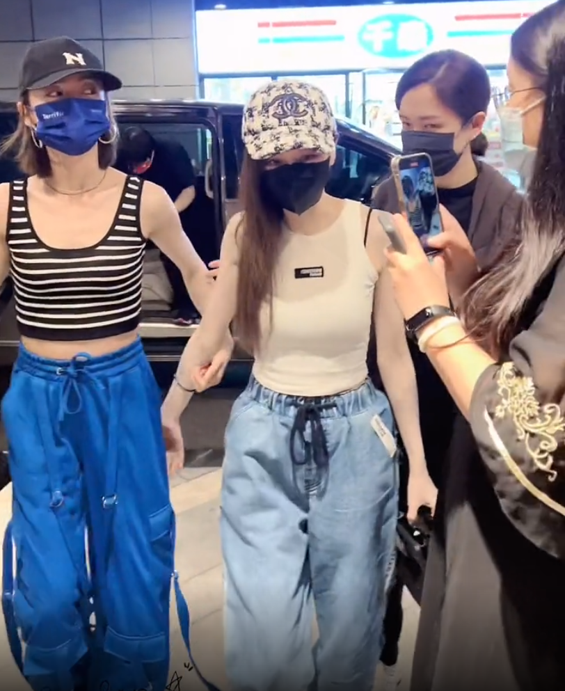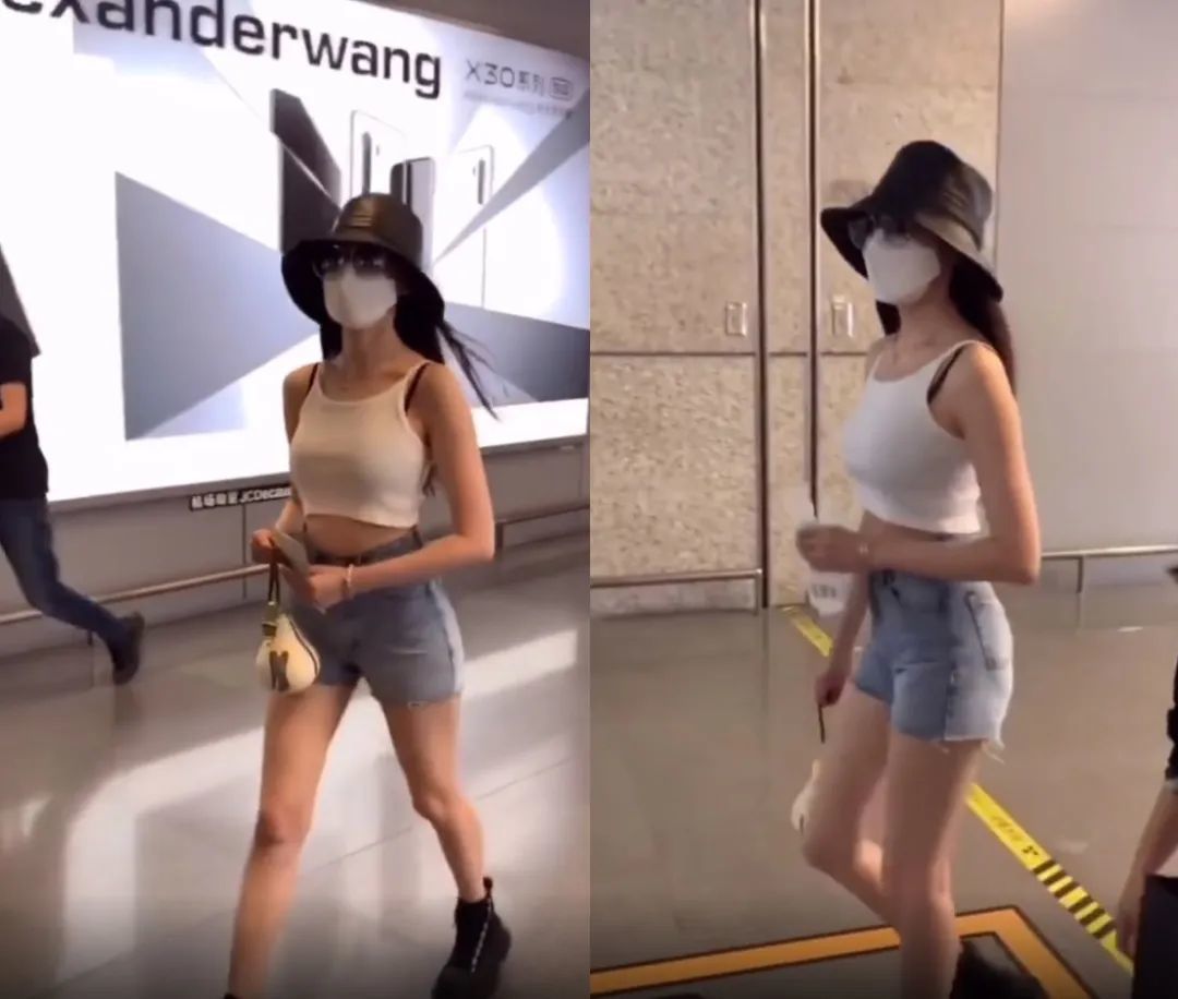 在机场,张天爱也不忘秀身材,牛仔短裤+白色小背心,身材秀得淋漓尽致。行走状态下,她的直角肩看起来正常一些。