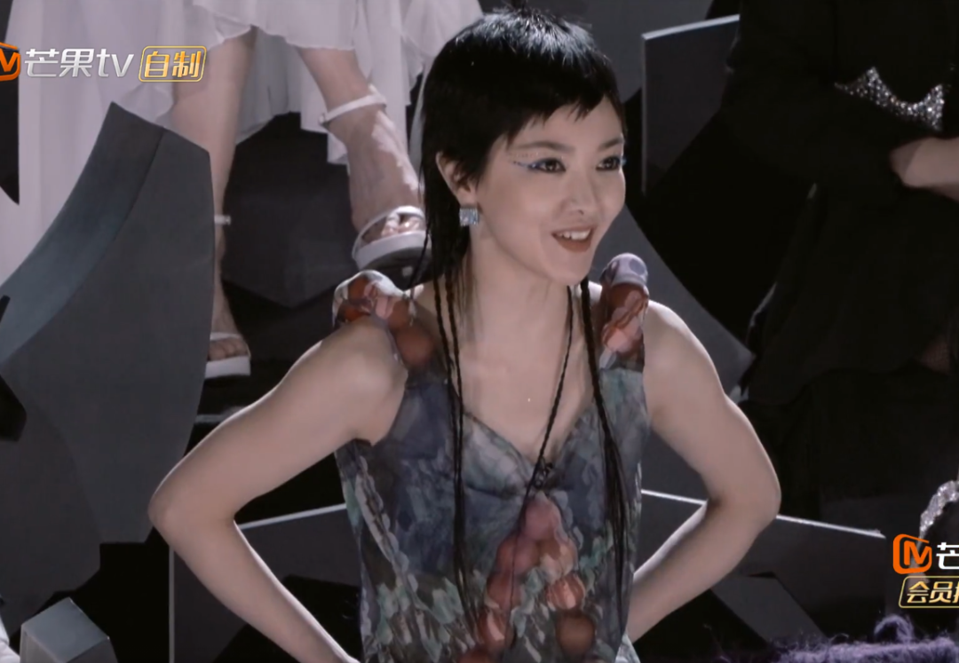 郭采洁的服装跟发型一样有个性,有时看起来还行,但大部分情况下,并不符合大众审美。郭采洁太瘦了,反而有点显头大。