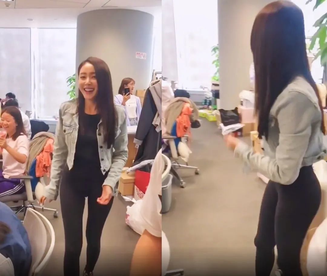 39岁的蔡卓妍,保养得很好,身材没得说,她穿一件很短的背心,挑战露胃装,露出小纤腰,165的身材,看起来仿佛175。