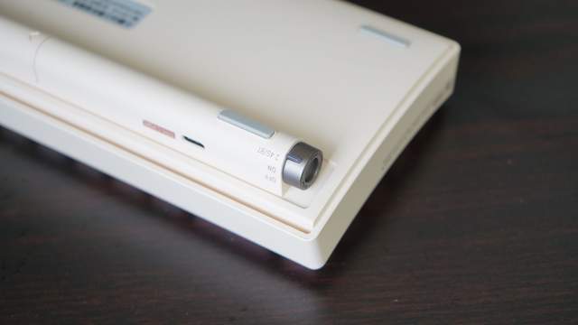 虽然看大小感觉Lofree洛斐小翘机械键盘很适合iPad,但事实上,Lofree洛斐小翘机械键盘是三模键盘,意味着它支持无线发射器连接电脑、有线连接电脑和蓝牙连接iPad、手机和电脑三种连接模式,使用场景全覆盖。Lofree洛斐小翘机械键盘底部右侧有模式切换拨钮、电量指示灯和USB-C接口。切换模式通过拨钮实现。