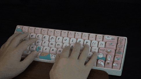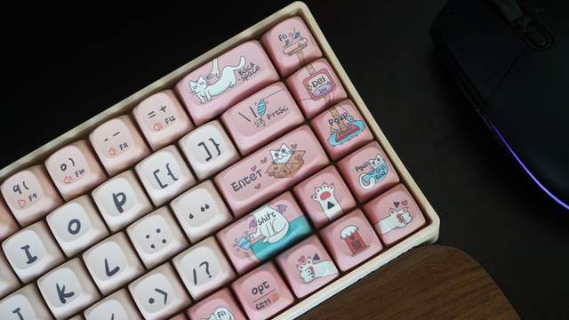 Lofree洛斐小翘机械键盘这款粉色猫咪系列的键帽真的让喜欢粉色的少男心和喜欢猫咪的我本人双厨狂喜,整个键盘到处都是优雅可爱的白色猫咪,粉色背景色,哪个男孩子见了不会惊呼一句真爱啊!