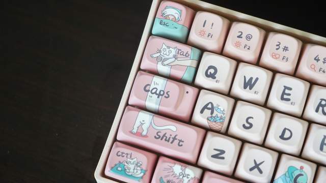 一开始看中Lofree洛斐小翘机械键盘是因为在小程序洛斐拼搭李看到Lofree洛斐小翘键盘推出了自选键帽的新款。早就用腻了色调单一、非黑即白的键盘了,工作已经这么枯燥,我一直倾向于使用色彩鲜明的键盘进行自我调节,几经斟酌我就选择了粉色猫咪款键帽。其实除了键帽,还有有轴体,键帽,机身,都可以随意的搭配,都可以在小而美的小程序洛斐拼搭里自选。