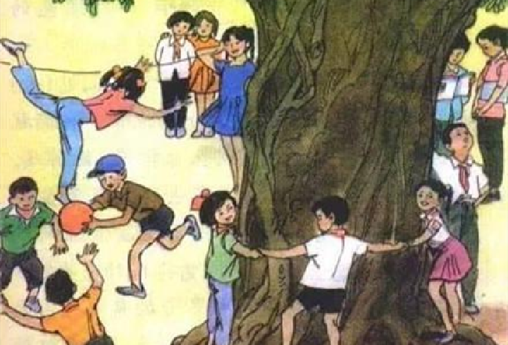 图七是课文《高大的皂荚树》的插图。我们看图片中的小朋友们,他们围绕着皂荚树做游戏,让孩子们体会到了童年的快乐。