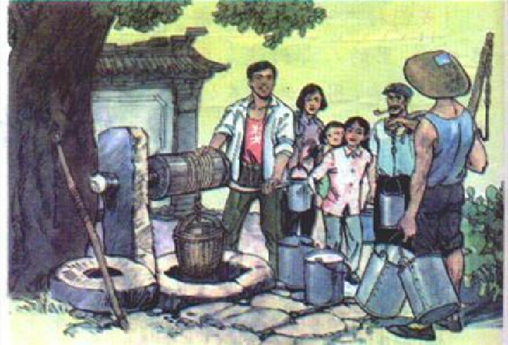 图四也非常熟悉,不过许多人的第一反应应该是《吃水不忘挖井人》。其实并不是,这幅插图的课文是《古井》,是老舍先生撰写的一篇文章,赞美了无私奉献的精神,同时也表达了对故乡的热爱。