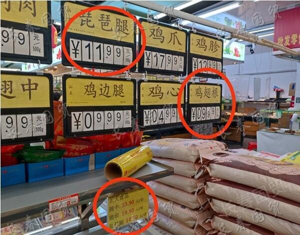 另一位网友爆料称,5月25日到永安街上的美日鲜超市购物,鸡翅根价牌上写着9.99元/500克,于是她买了一份,结算后才发现是19.90/袋,而每袋恰好也是500克。再回到超市才发现在大价牌下面还有一个不起眼的另一个价格的小价牌,而价格高的产品是放在冰柜非常明显的位置,这样才使好多顾客对产品和价格产生了误解!有网友感叹:“这是被商家套路了!商家太精了。”也有网友认为“还是顾客自己粗心不认真!”