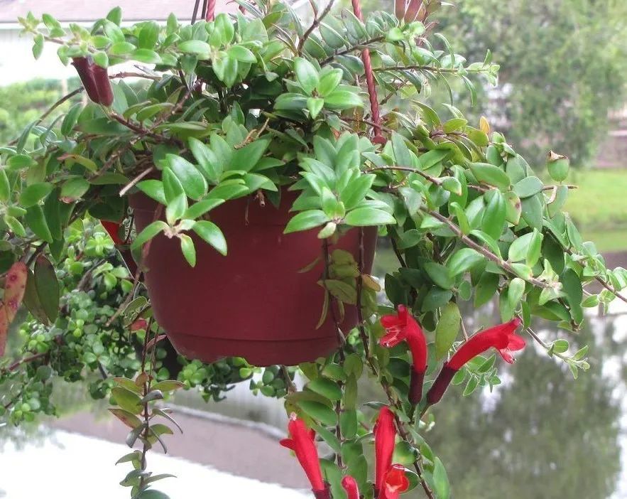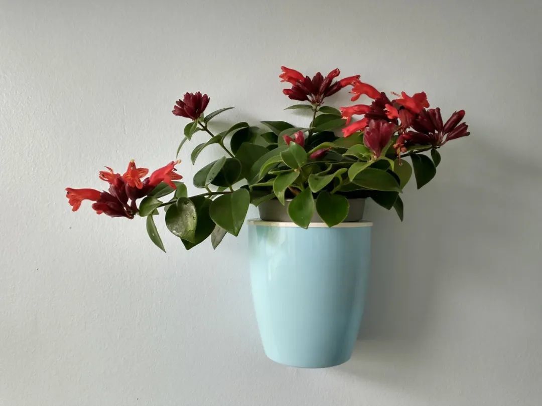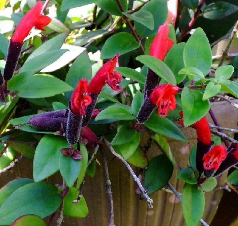 最受欢迎的就是毛萼口红花,它是多年生的藤本植物,它的枝条可以低垂生长,养成窗台或阳台上的垂盆植物,它的叶子是椭圆形的,叶面有光泽,它的花托是深红色的,花冠筒则是鲜红色的,花萼上会有细小的绒毛。