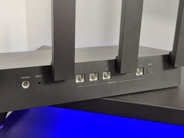 对于路由器来说,接口是相当重要的。华为路由器AX6有着四个以太网接口,支持WAN 和 LAN 接口自适应,入户网线可以插任意一个网口均可以上网。不过WAN口数量的确不多,对于需要有线连接比较多的家庭,可能会显得捉襟见肘。另外,华为路由器AX6后面还有常见的电源口、RESET 复位孔。