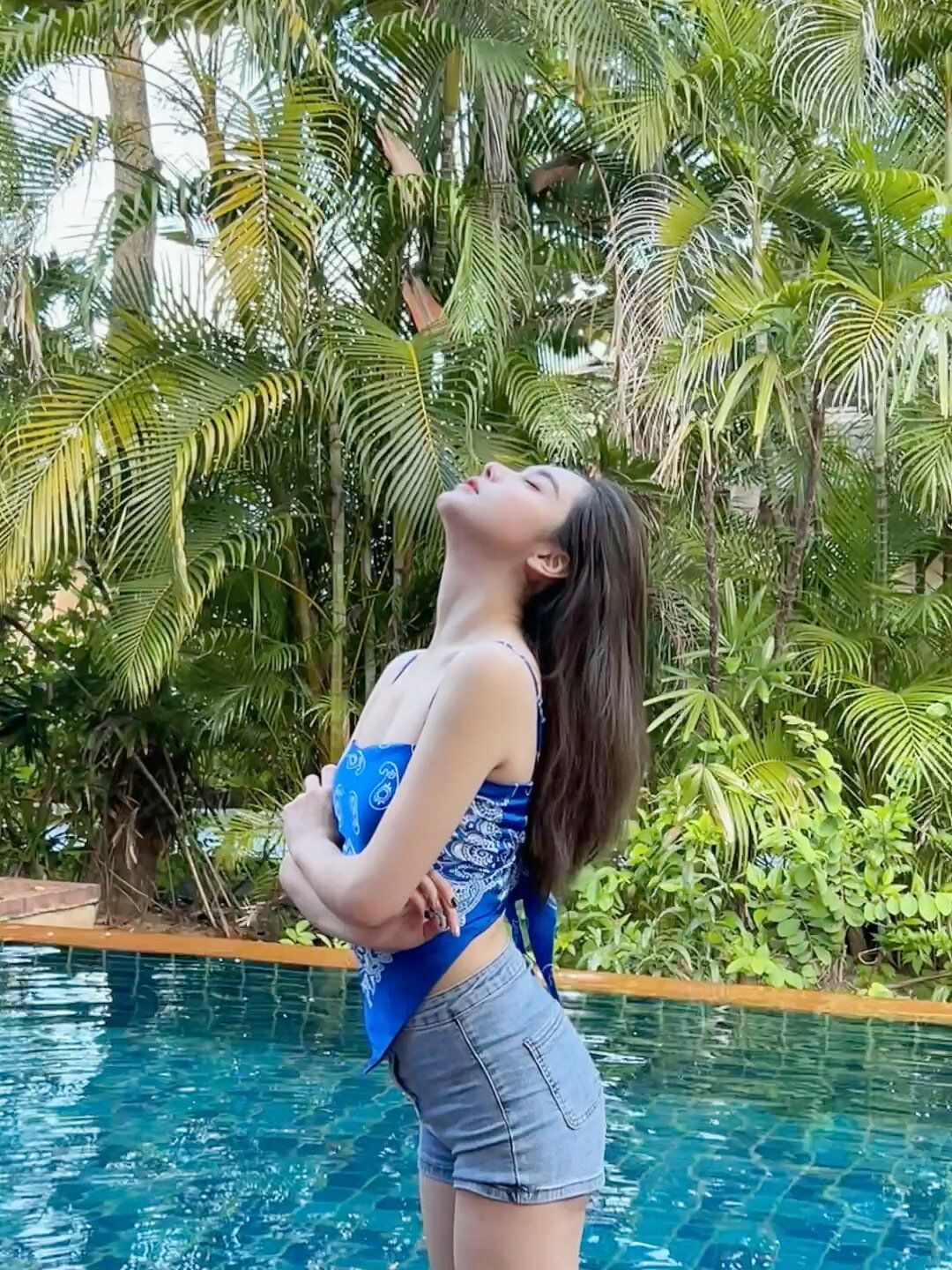 通过社交媒体,在海南三亚发布一条信息,美娜:整个夏天想和你环游世界,天气好拍Live都好看!