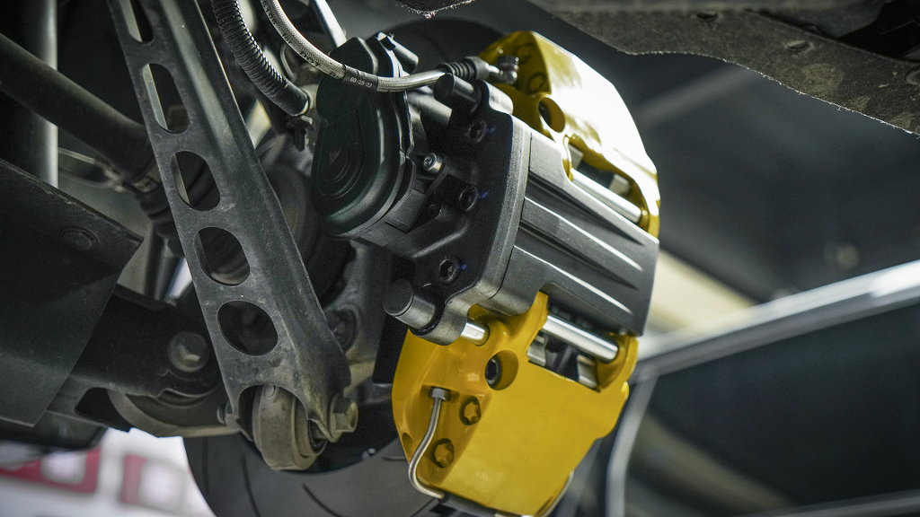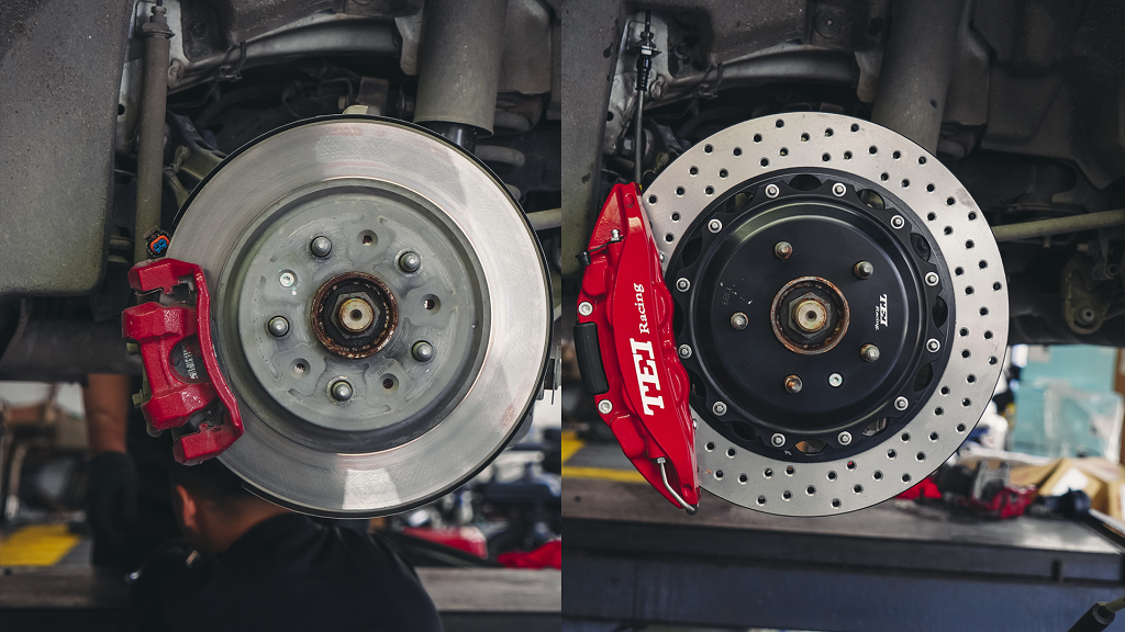升级后整个轮毂看起来超级丰盈饱满!匹配原厂总泵,刹车反应速度提升,脚感更线性。搭配TEI高碳合金碟盘,提升制动力臂,制动效果更好,能体验到加装高配版的乐趣。(心动的车友们赶快动起来)