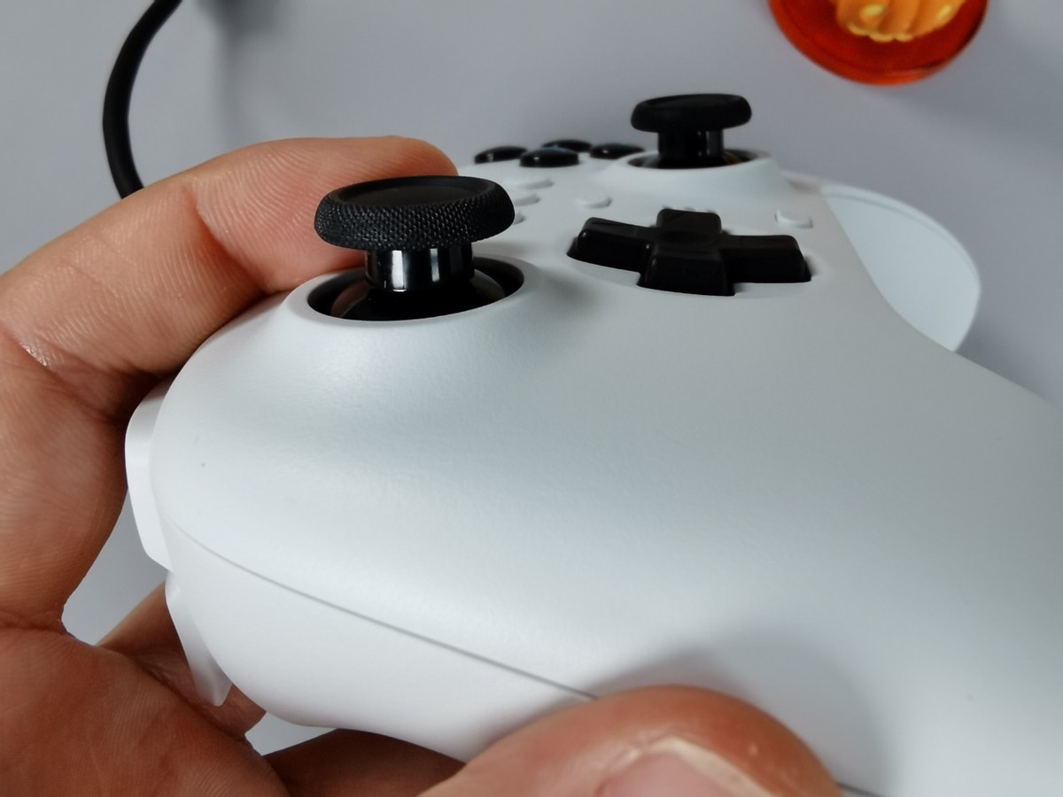 八位堂猎户座手柄Xbox版采用ALPS摇杆,精度高定位准,死区小,默然低死区。如果玩家想玩FPS游戏,可在精英软件中开启无死区模式。摇杆的手感舒适,回弹力度适中,并且还采用了3段防滑纹,操作起来非常顺手,不用担心手滑而脱落。十字键和ABXY的按压力度也比较合适,按压的手感较好,十字键按压手感比ABXY稍微重一点,应该是考虑到十字键使用更加频繁吧。