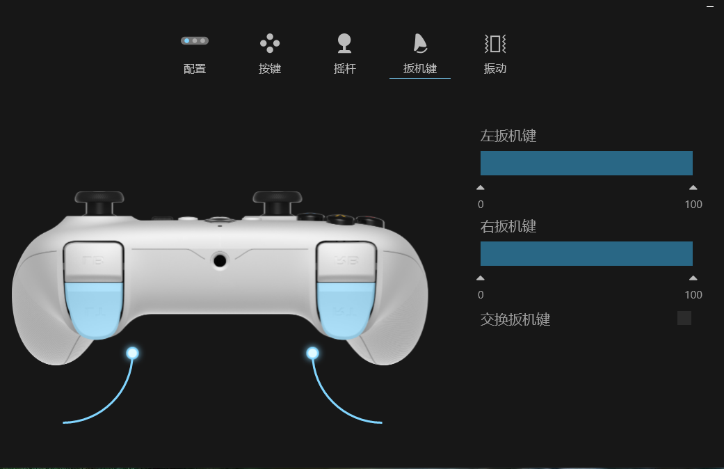扳机键支持调整幅度,并支持左右交换,自定义就是那么强大。