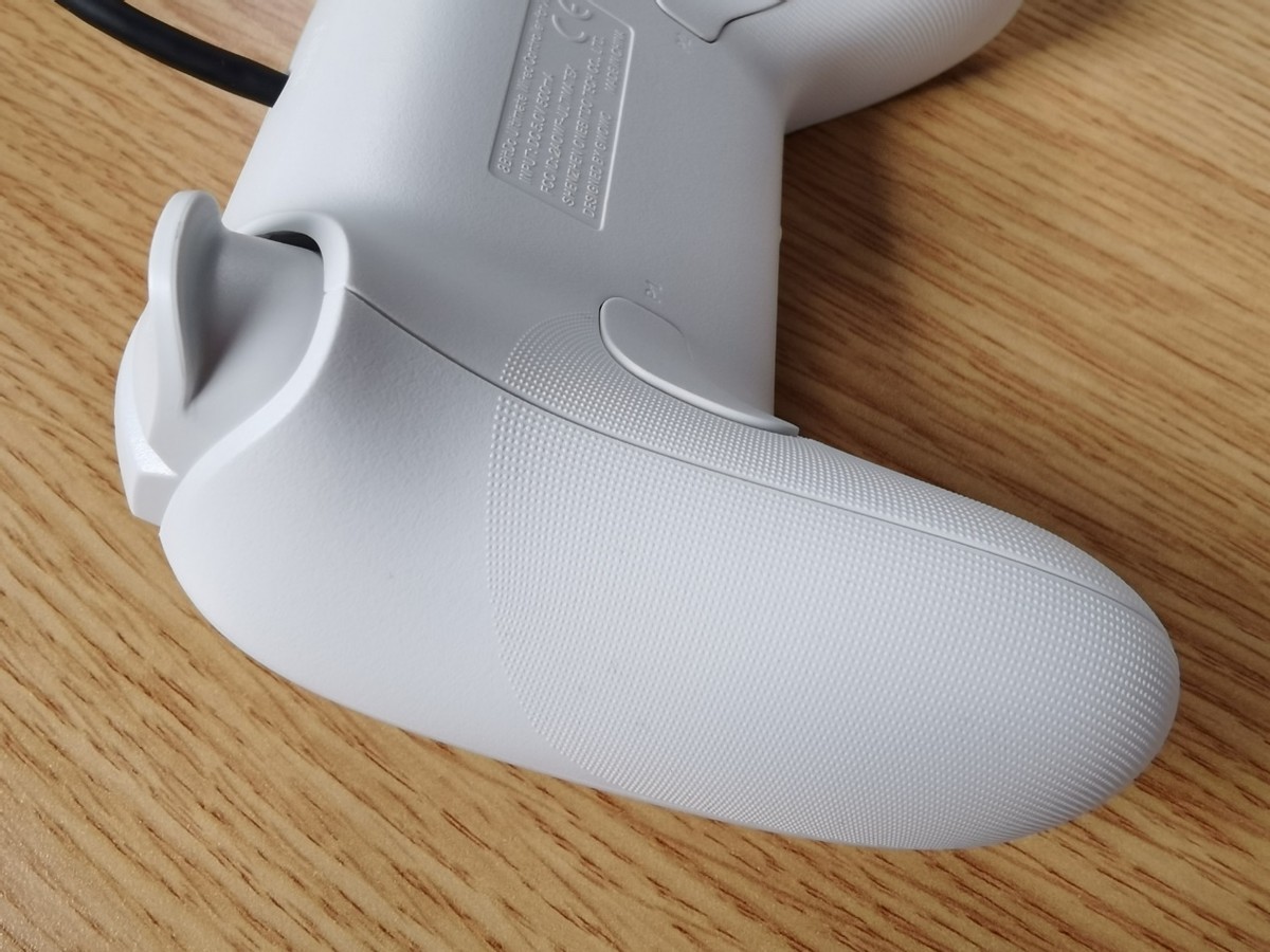 我们还留意到,背面握把那部分和旁边的部分不同,做了防滑处理,有一些微小的颗粒,带来了不一样的握持感同时又防滑。值得一提的是,除了左右扳机键内置了振动马达,左握把内置了一个大型马达,右握把内置了一个小型马达,玩支持震动的游戏时,带给玩家身临其境的游戏体验。到此,我们可以看出,八位堂的用心和较真,细节处理得非常人性化,只想带给玩家纯粹的游戏体验。
